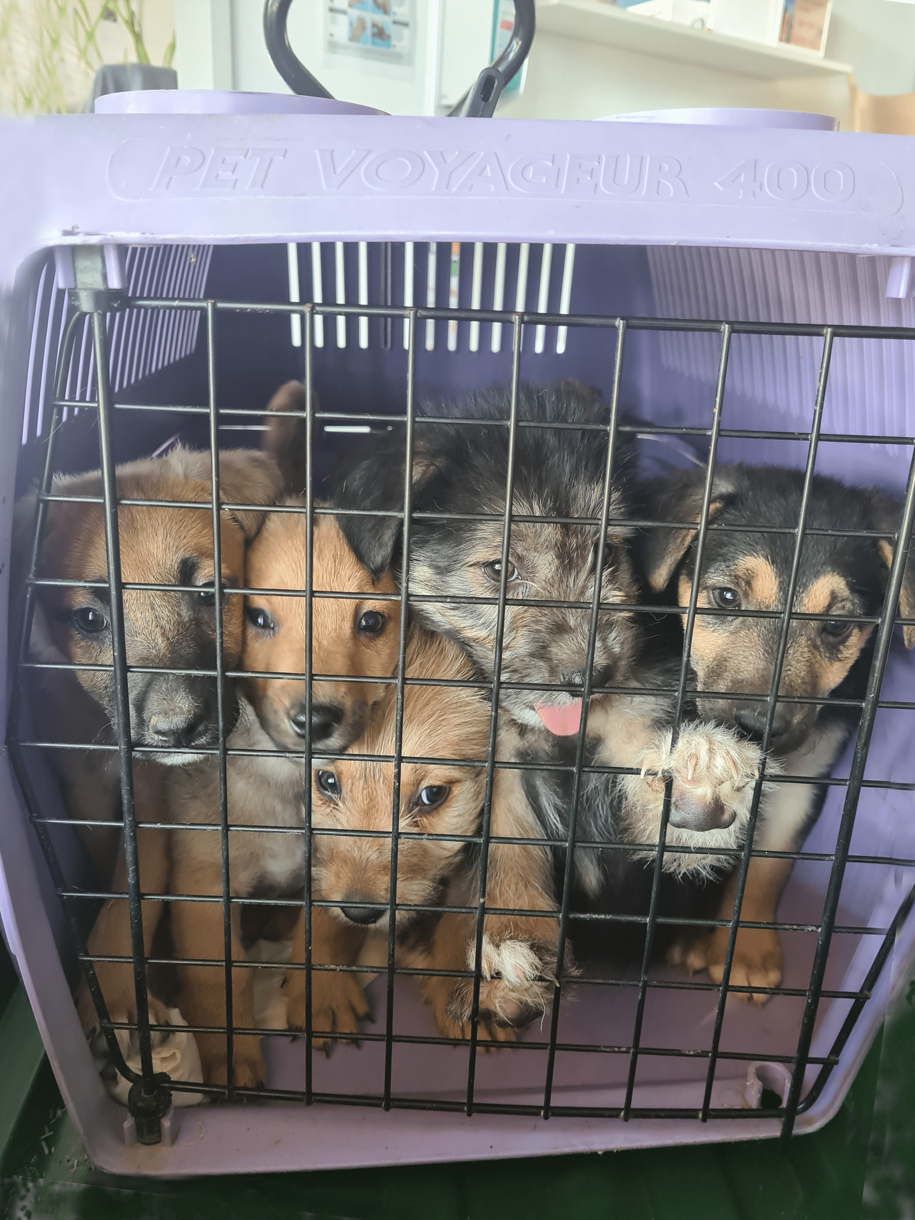 Wien – Donaustadt: Ergreifenden Schicksalen und herzzerreißenden Tragödien begegnet man im Tierschutz beinahe täglich. Doch der 27. Mai entpuppte sich als neuer negativer Höhepunkt in diesem Jahr. An diesem Freitagnachmittag wurden im Bereich des Campingplatzwegs (22. Bezirk) Passanten auf einen lila Katzentransporter aufmerksam, neben dem eine weiß-beige Hündin saß. Da ein leises Winseln aus dem Transporter drang, näherten sich die Passanten vorsichtig. Aus dem Gitter des Transporters blickten acht verschreckte Augenpaare. Jemand hatte acht Welpen und deren Mutter ausgesetzt. Ohne Wasser, Futter oder sicheren Unterschlupf wurde die Hundefamilie zurückgelassen.